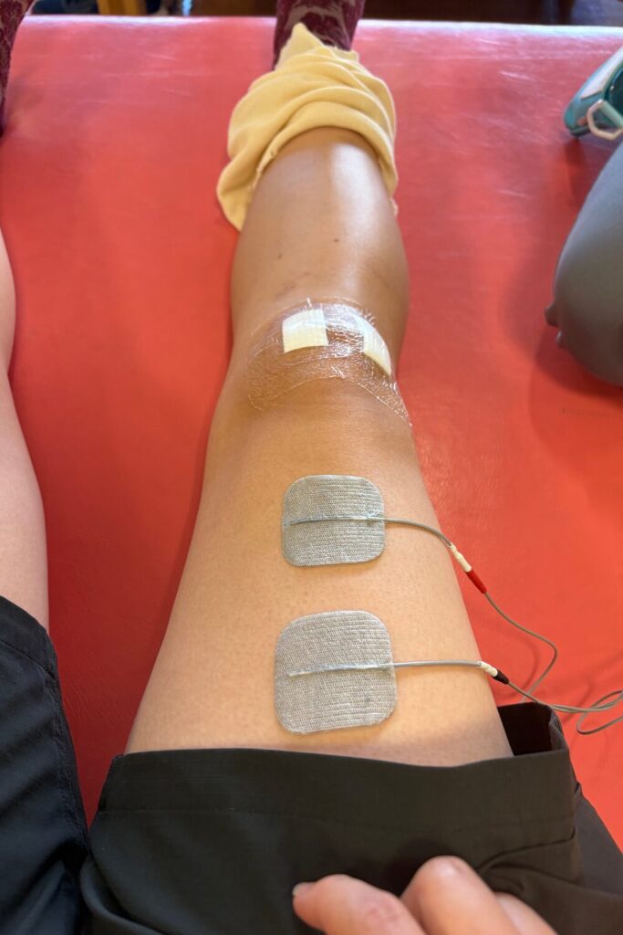電気を当てて筋肉の位置や力が入る感覚を確認しながら進めています!